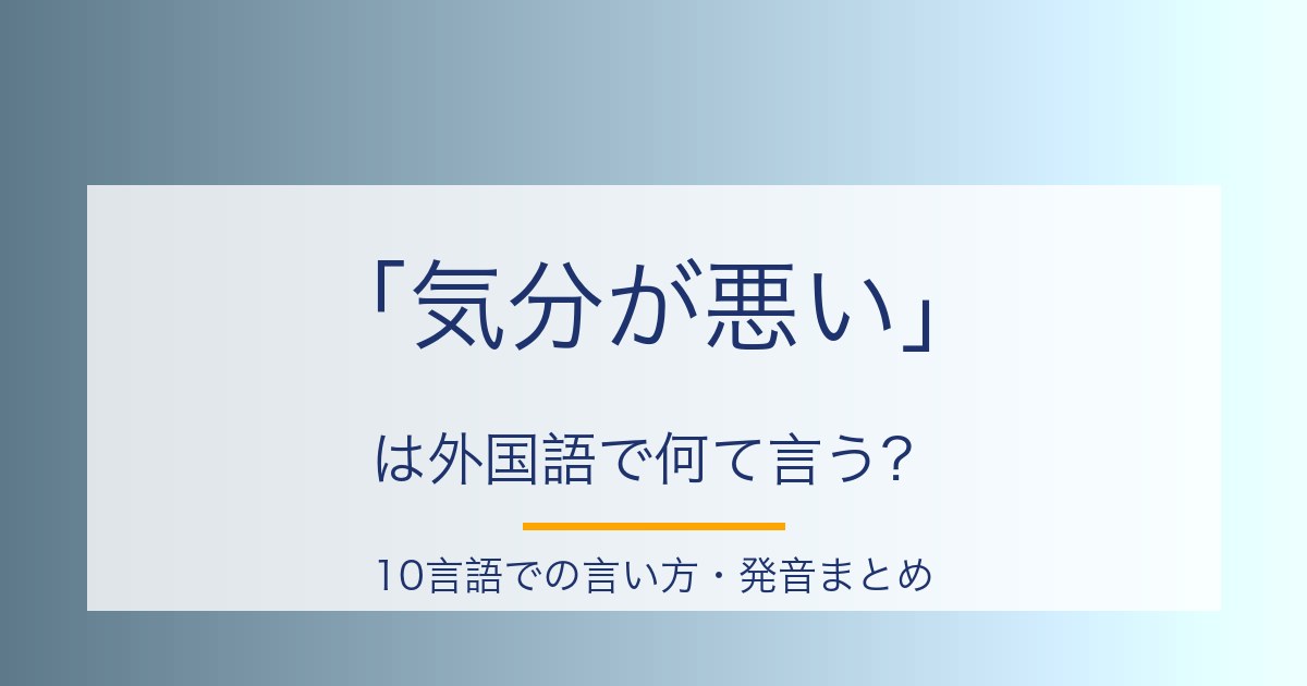 旅行中に体調を崩してしまったとき、自分の状態を現地の言葉で伝えられれば、適切な対応やサポートを受けやすくなります。「気分が悪いです」というフレーズは、吐き気、めまい、発熱、体のだるさなど、さまざまな体調不良をひとまず相手に伝えられる便利な表現です。この記事では、10言語での「気分が悪いです」の言い方を発音つきでまとめました。緊急時だけでなく、ホテルのスタッフや現地の友人に助けを求めるときにも役立ちます。