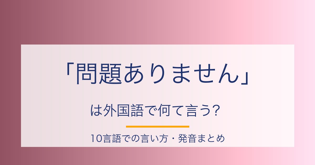 相手の申し出を快く受け入れるとき、「大丈夫ですよ」と安心させるとき、ビジネスで「問題なく進行中です」と伝えるとき。「問題ありません」は世界中で使われる便利なフレーズです。この記事では、10言語での「問題ありません」の言い方を発音つきでまとめました。旅行先や海外の仕事場、国際交流の場面でぜひ活用してみてください。