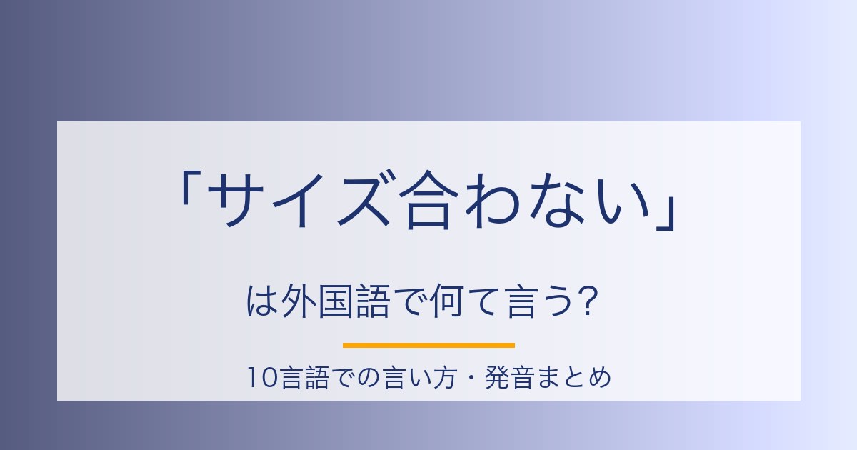 海外で服や靴を試着したとき、思ったよりきつかったり、大きかったりすることはよくあります。そんなとき「サイズが合いません」と現地語で伝えられると、店員さんが別のサイズをすぐに持ってきてくれます。国によってサイズ表記の基準が違うので、このフレーズは海外でのショッピングにとても役立ちます。この記事では、10言語での「サイズが合いません」の言い方を発音つきでまとめました。