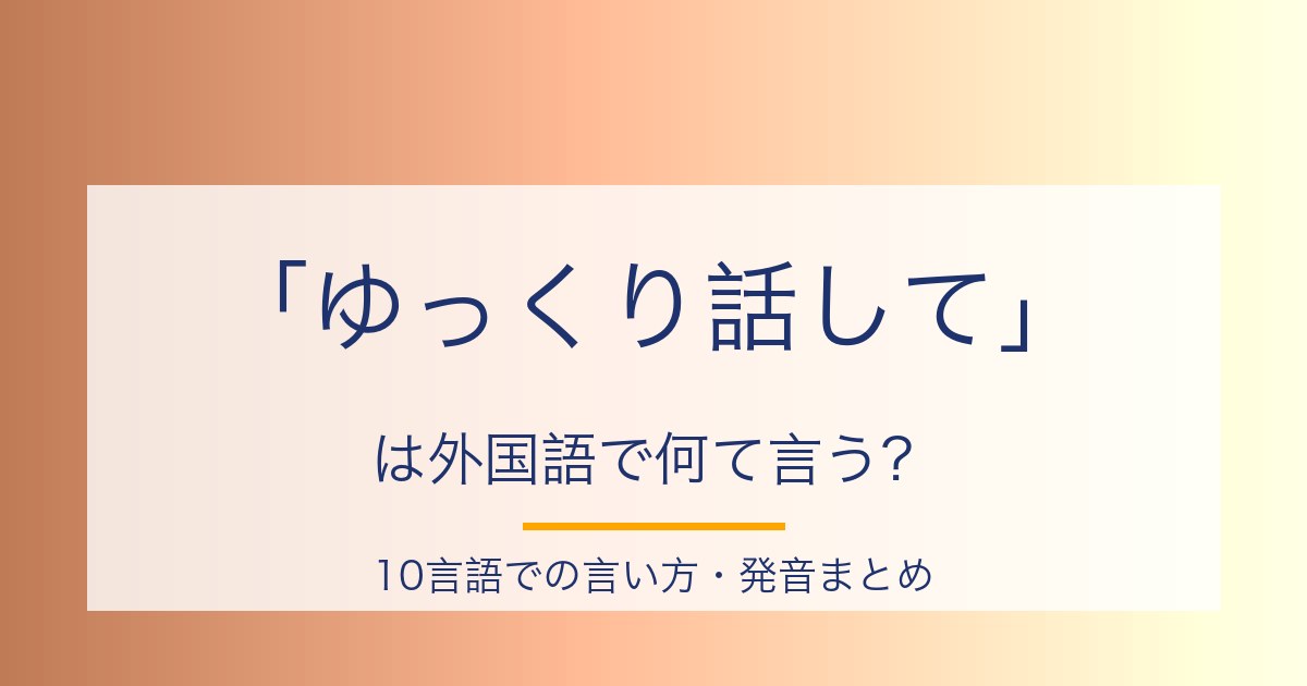 外国語の会話で一番困るのは、相手の話すスピードが速すぎて聞き取れないことです。そんなときに「ゆっくり話してください」と丁寧にお願いできると、会話が一気に楽になります。旅行先、レストラン、空港、ビジネスシーンまで使える万能フレーズを、10言語での言い方を発音つきでまとめました。